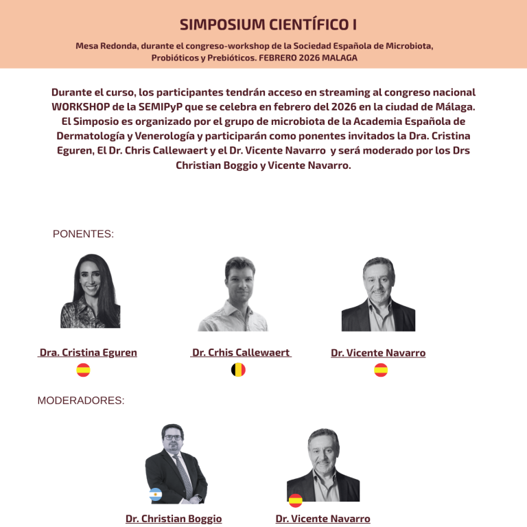 Impartidos por expertos en estudios de microbiota cutánea e intestinal, maduración inmune y disbiosis y aplicaciones clínicas en dermatólogia.
