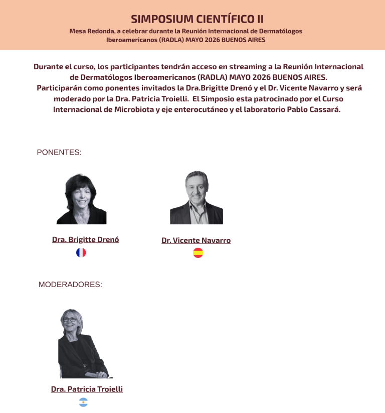 Impartidos por expertos en estudios de microbiota cutánea e intestinal, maduración inmune y disbiosis y aplicaciones clínicas en dermatólogia.